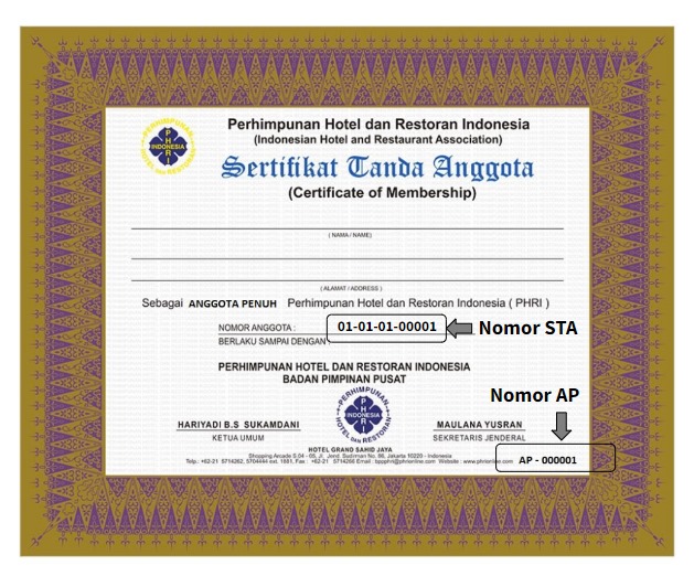 mendapatkan STA dan Nomor AP pada Sertifikat Tanda Anggota PHRI